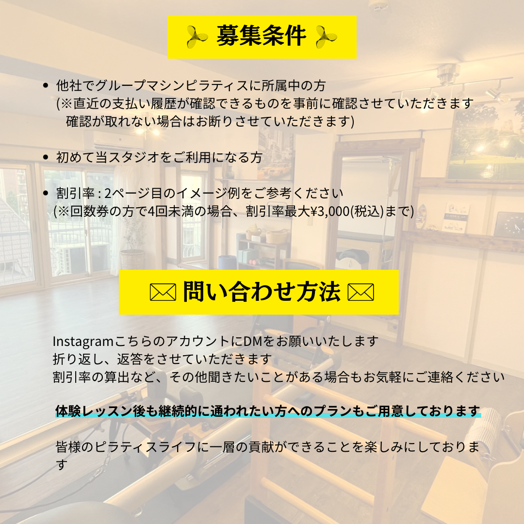 【限定10名】グループマシンピラティスに通っている方向けモニター